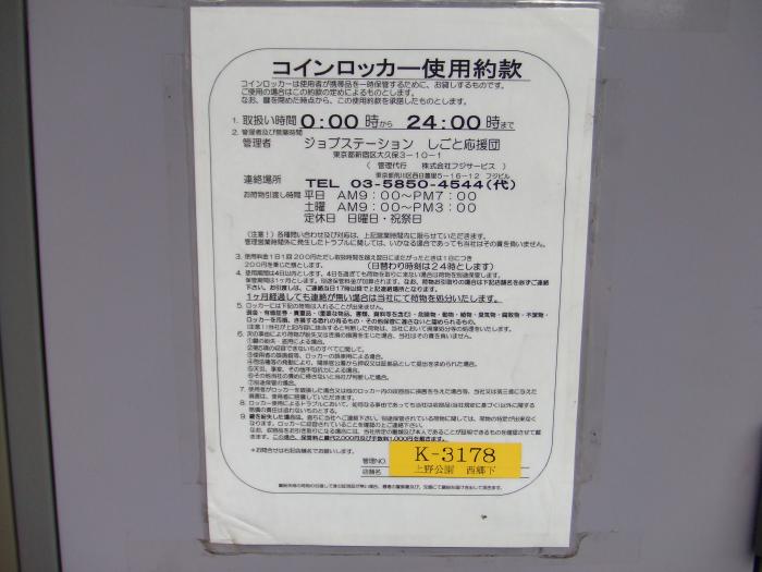 | ← | コインロッカー、使用約款 | → |